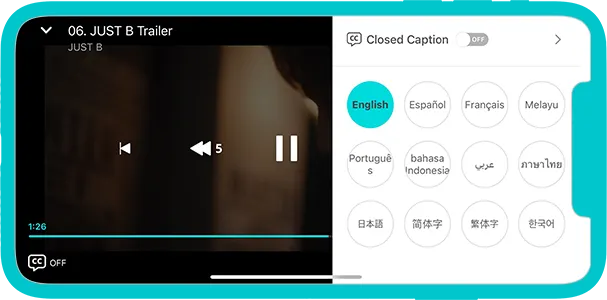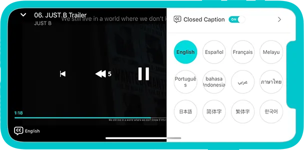No modo de tela cheia, pressione o botão CC no canto inferior esquerdo e, em seguida, use o botão de legendas ON/OFF.
