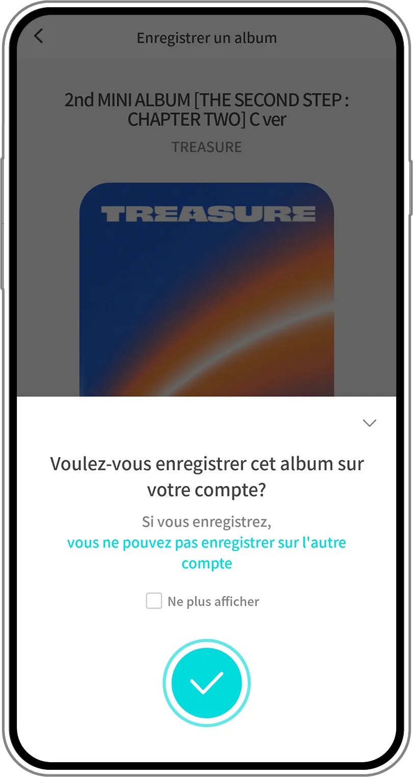 Enregistrez le TAG ALBUM dans votre compte en cliquant sur le bouton de vérification qui apparaît après avoir scanné.
