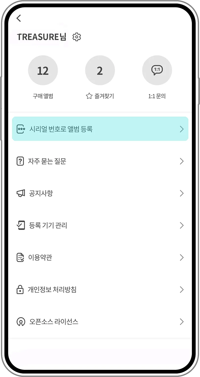 시리얼 번호로 앨범을 등록하는 방법을 안내해 드립니다.