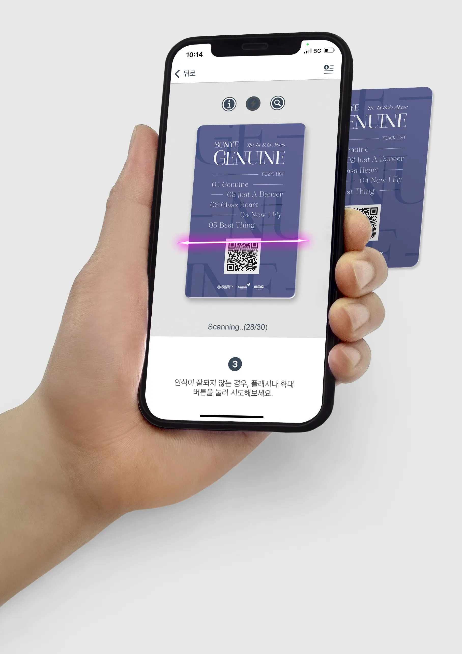 نوع QR: بطاقة بها رمز QR. يستخدم وظيفة الكاميرا على الهواتف الذكية للمصادقة على Nemo Album. قم بتثبيت تطبيق Nemoz ، واضغط على الزر "+" ، واستخدم وظيفة "QR" للمصادقة على Nemo Album وتفعيله