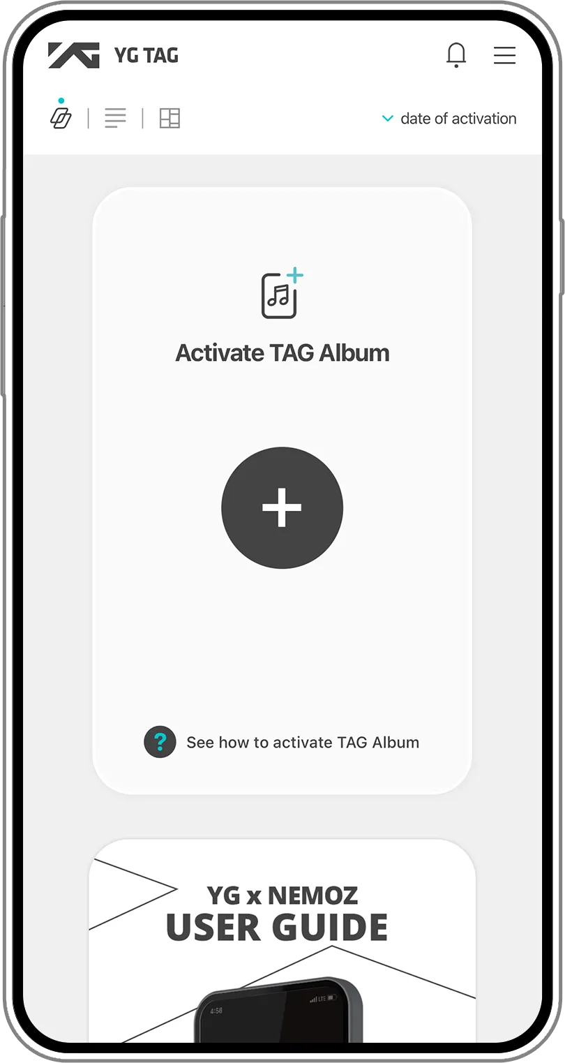 ※ Setelah akun Anda masuk ke aplikasi YG x NEMOZ, pindai QR melalui kamera HP Anda dan albumnya akan diaftarkan secara langusng.
