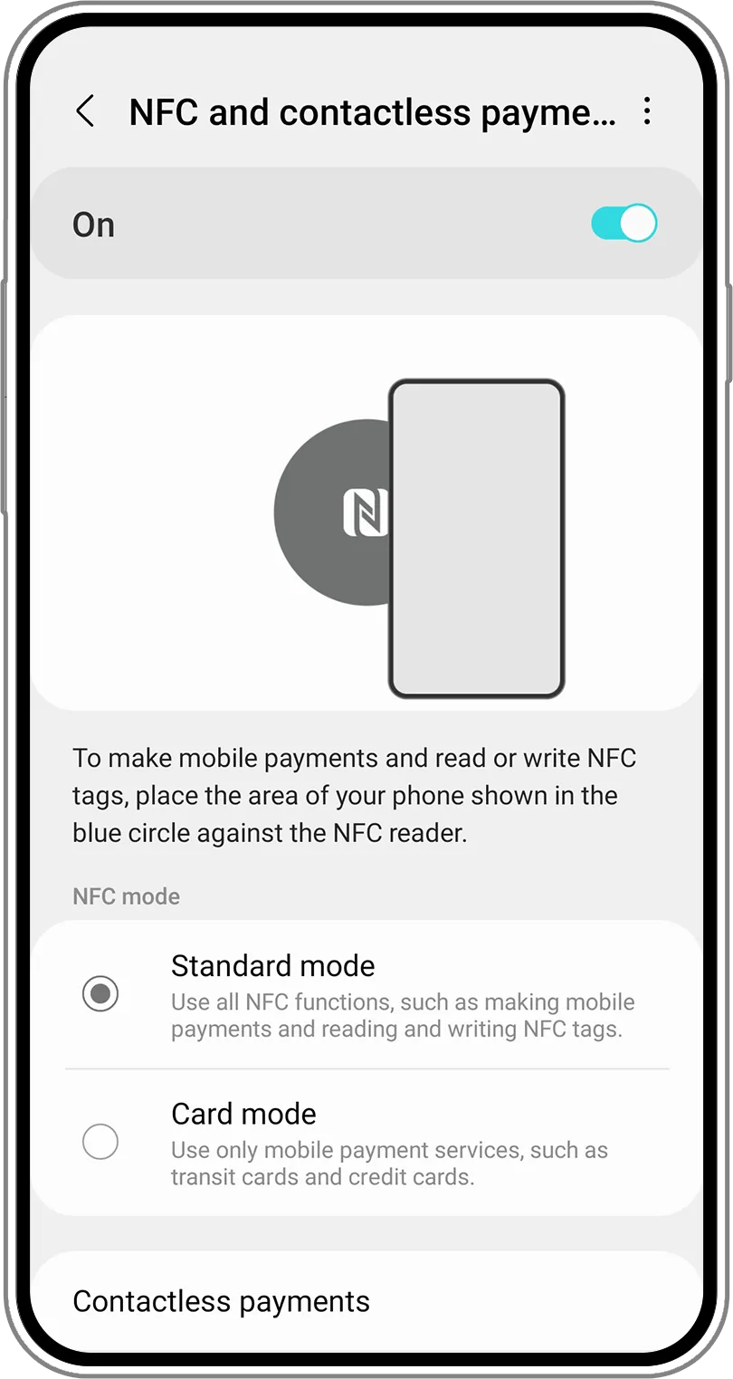 Agar bisa membaca tag NFC, aturkan dengan Mode Standar
