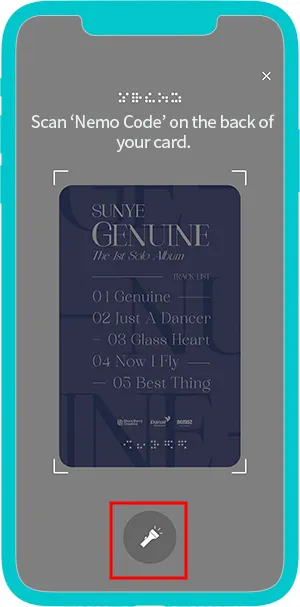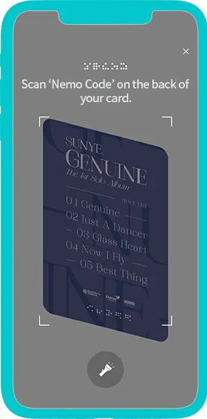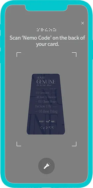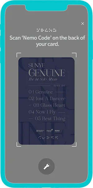 Ative o flash na câmera do aplicativo Nemoz ou escaneie o código Nemo em sob iluminação natural ou fluorescente!