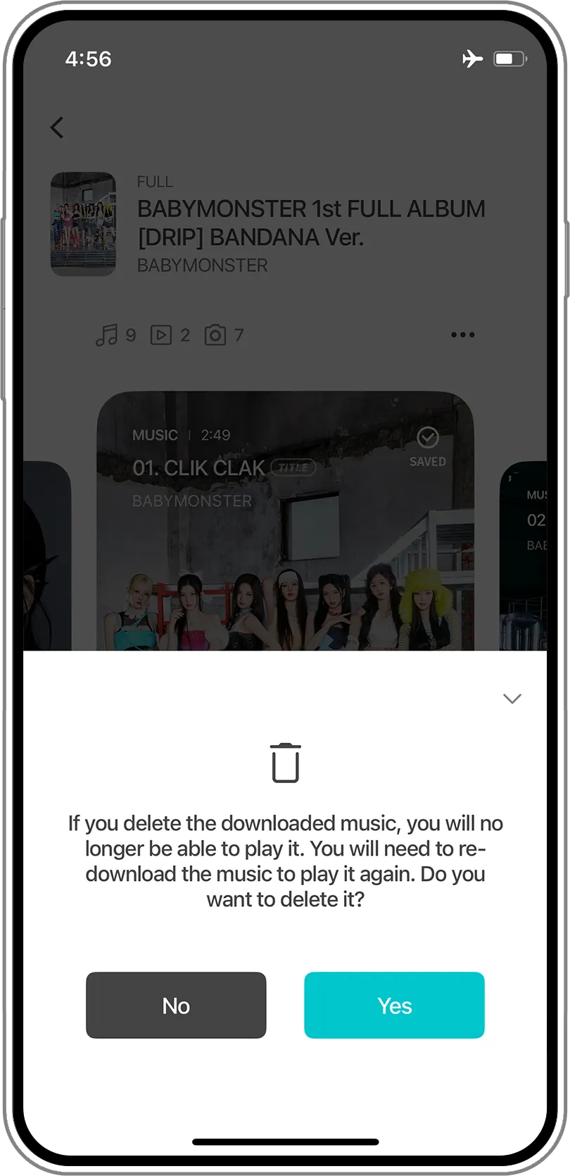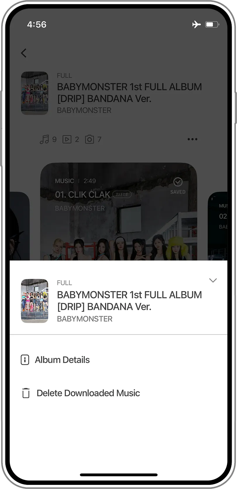 Jika tombol “SAVED” tidak diaktifkan di album yang sudah terdaftar, Anda dapat menggunakannya secara normal dengan mengklik tombol detail di album, mengklik tombol “Hapus sumber suara yang diunduh”, lalu menekan tombol putar lagi untuk mendownload albumnya.