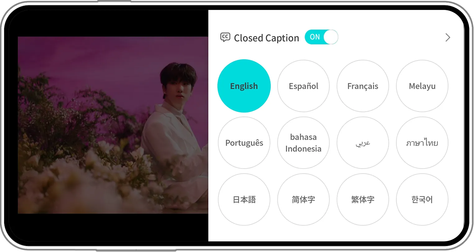 Jika tekan tombol OFF di sebelah CC (Closed Caption), subtitlenya akan dimatikan, lalu jika tekan tombol ON, subtitlenya akan dihidupkan lagi.