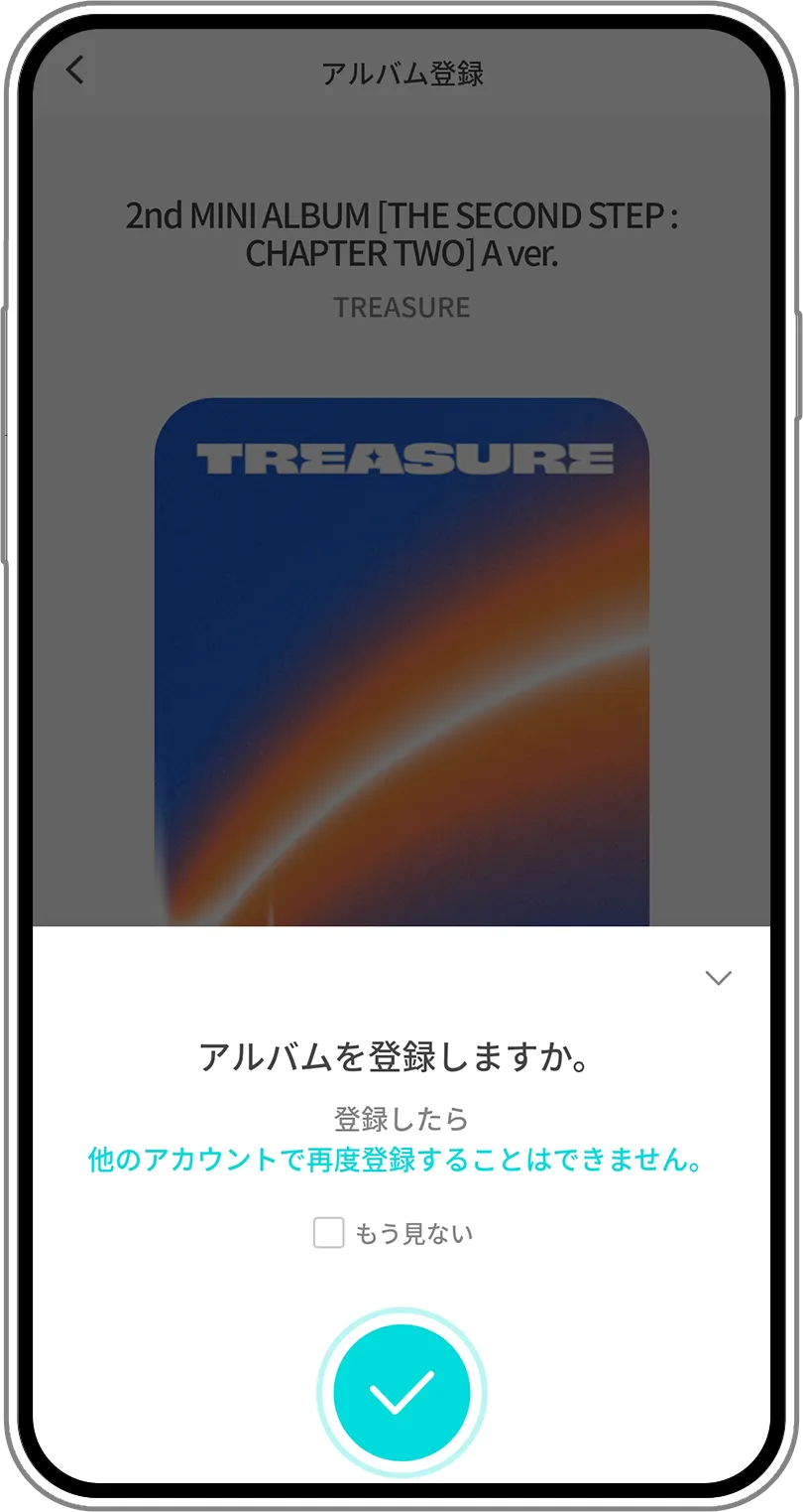 スキャン後に現れるチェックボタンを押して、ご自身のアカウントにTAG ALBUMを登録してください。