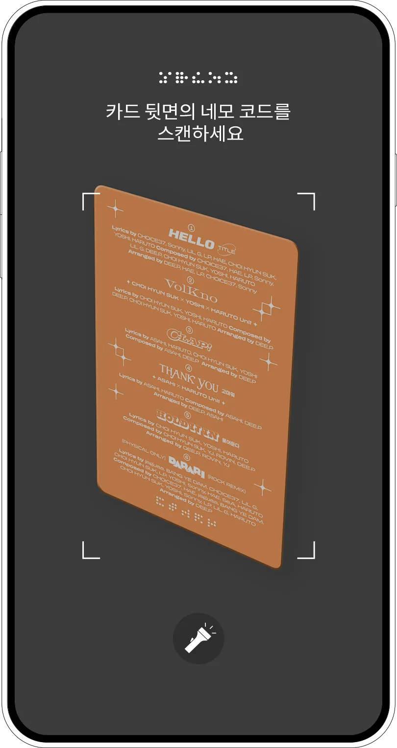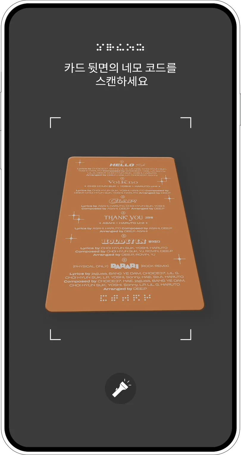 YG x NEMOZ 앱 카메라의 플래시 버튼을 키고 사용하거나, 자연광 혹은 형광등 아래의 밝은 곳에서 네모 코드를 스캔해보세요!