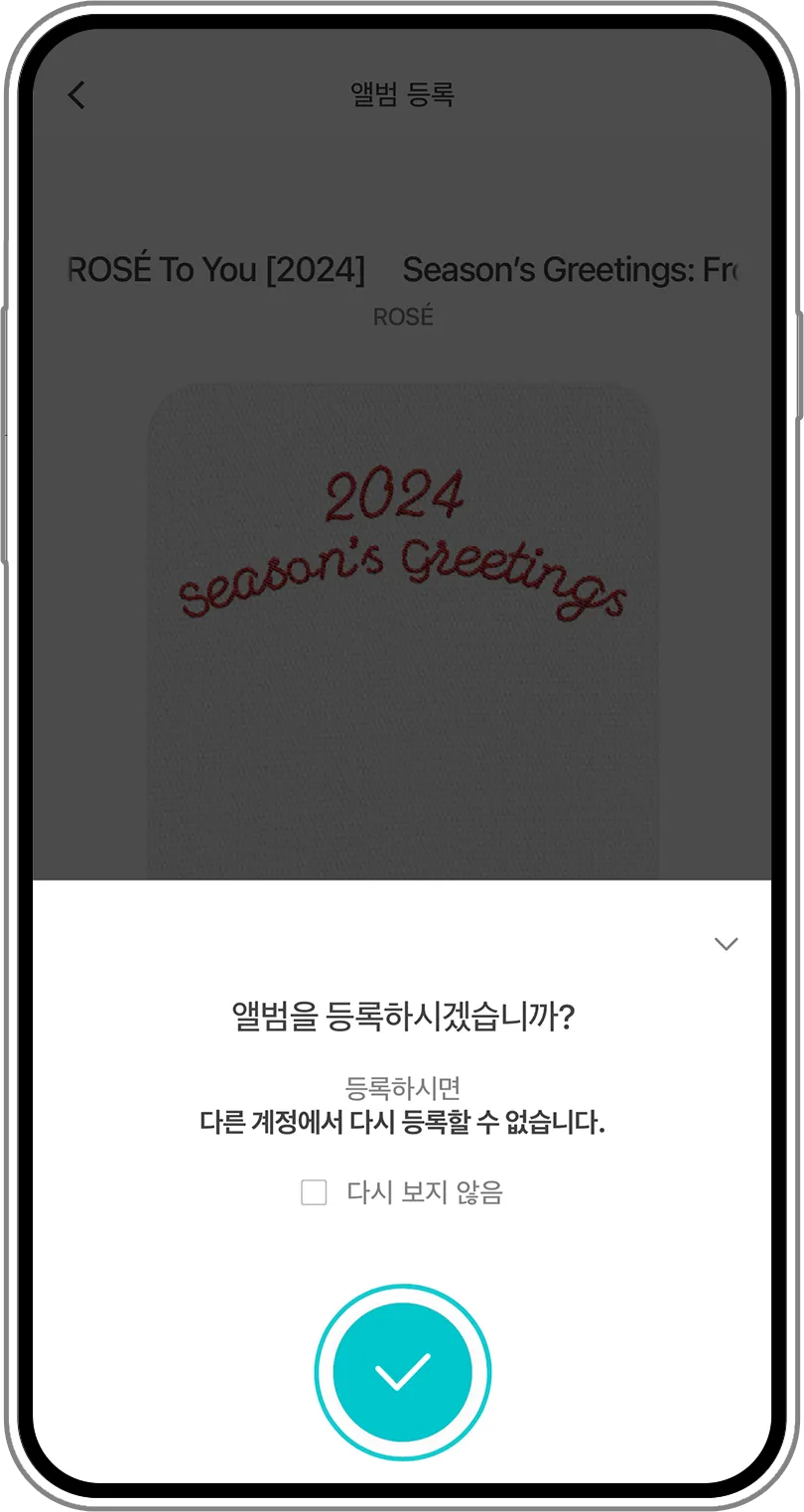 체크 버튼을 눌러 가입한 계정에 앨범을 등록하세요.