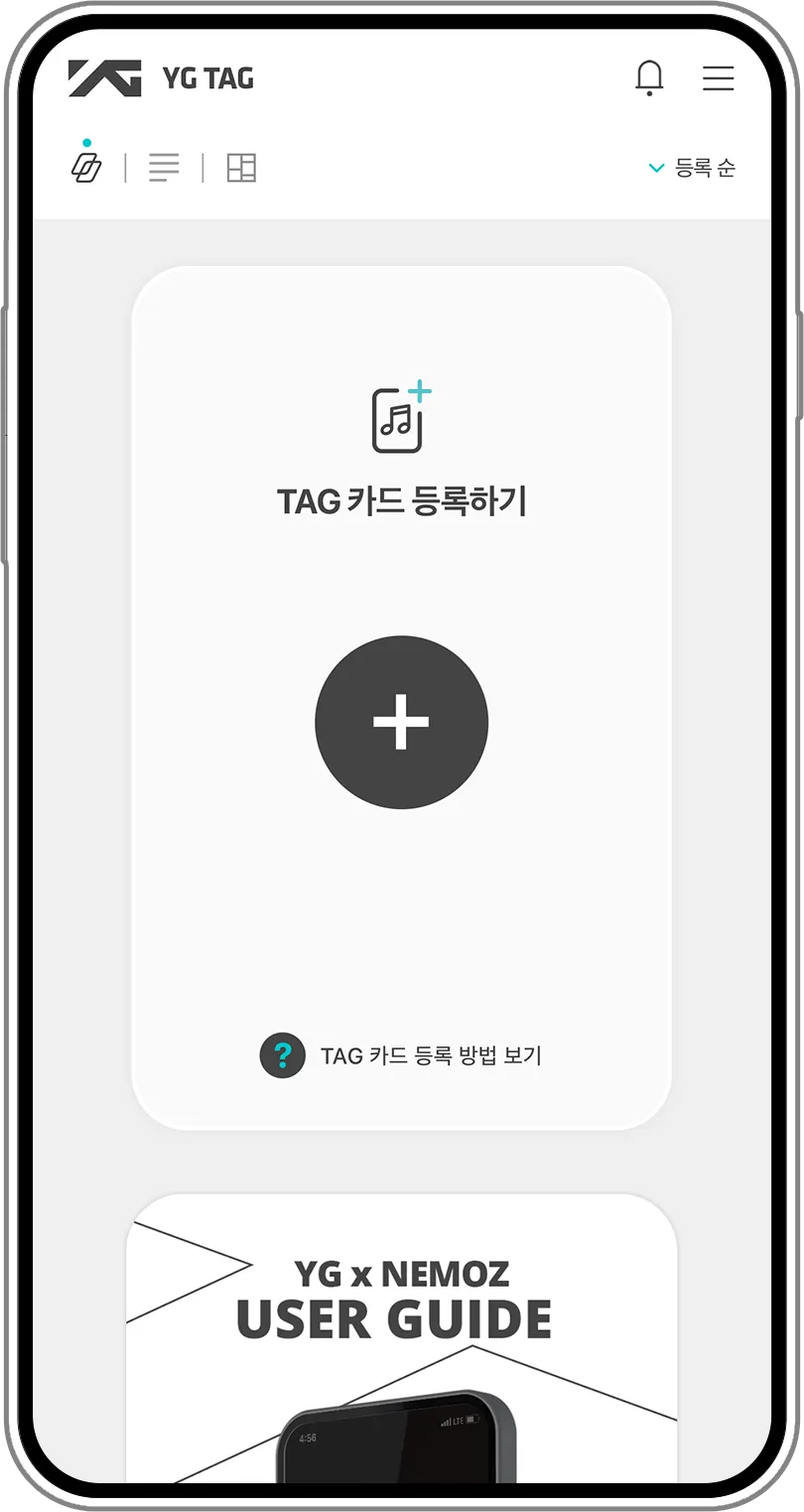 ※ YG x NEMOZ 앱에 계정이 로그인 된 후에는 휴대폰 카메라로 QR을 스캔하면 앨범이 바로 등록됩니다.