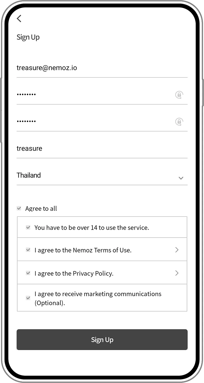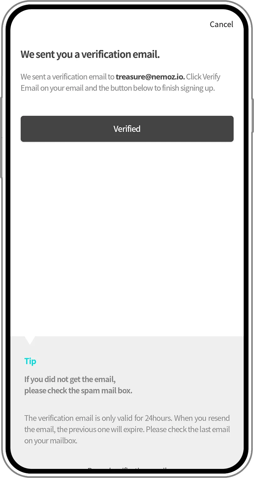 Um e-mail de verificação foi enviado para o endereço de e-mail que você inseriu em seu ID. Clique no botão 'Verificar Conta YG x NEMOZ' no e-mail. Se você não receber um e-mail de verificação em 1 minuto, verifique sua pasta de spam.