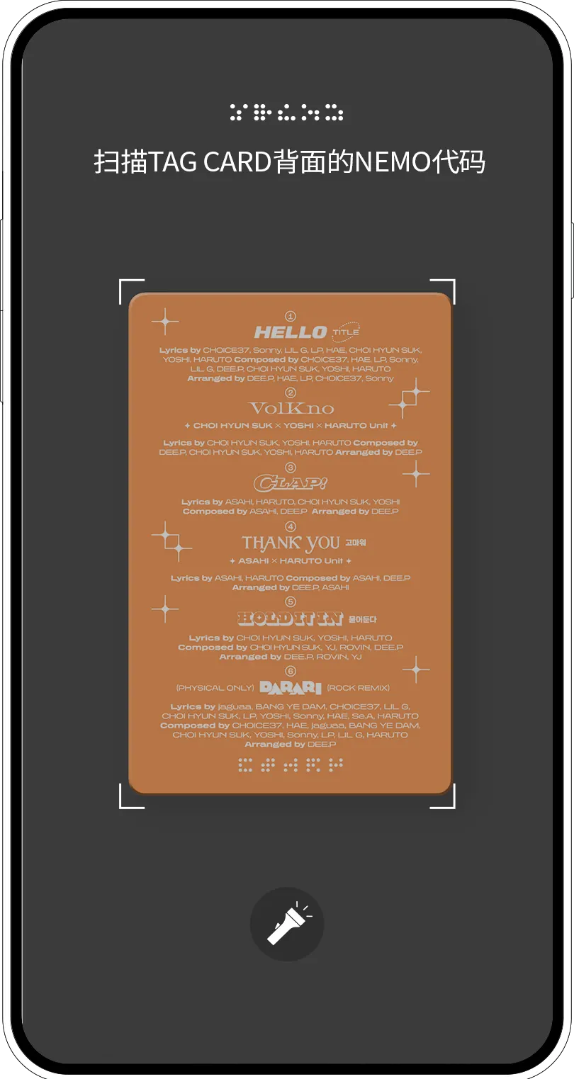 * 为了在YG x NEMOZ应用软件中扫描Nemo代码,请使用手机。因为平板设备不支持Nemo代码,所以无法使用相机功能。