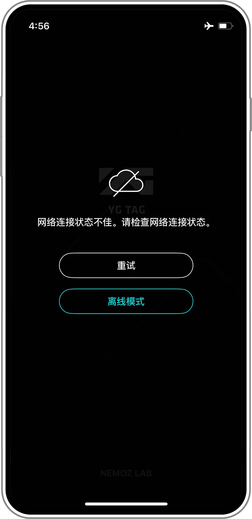 開啟飛行模式,關閉移動數據後,請重啟YG x NEMOZ APP。