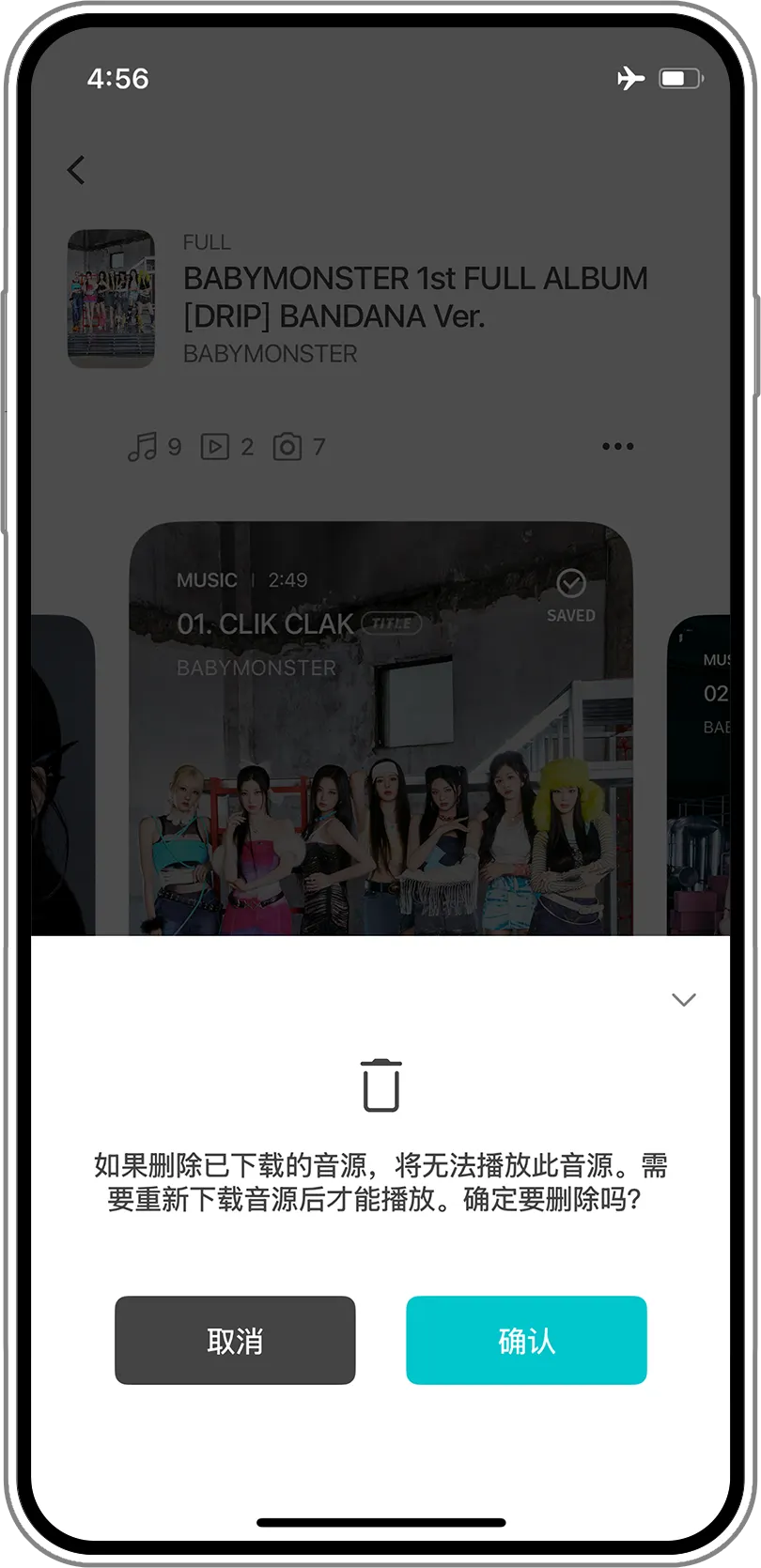 如果已經登入的專輯上未顯示“SAVED”標誌,請點選專輯內的“…“併選擇“刪除已下載的音源”,之後再次點選播放重新下載專輯,就可以正常使用啦。